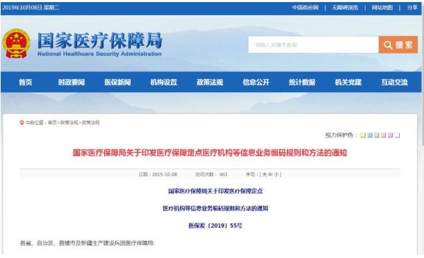 2019年10月8日,國(guó)家醫(yī)保局發(fā)布《醫(yī)療保障定點(diǎn)醫(yī)療機(jī)構(gòu)等10項(xiàng)信息業(yè)務(wù)編碼規(guī)則和方法》,公布定點(diǎn)醫(yī)療機(jī)構(gòu)、醫(yī)保按病種結(jié)算病種以及醫(yī)保日間手術(shù)病種等10項(xiàng)信息業(yè)務(wù)編碼規(guī)則和方法。