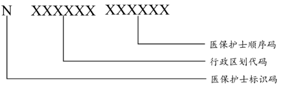 第3部分:醫(yī)保護(hù)士順序碼,對(duì)同一市級(jí)行政區(qū)(市、地區(qū)、自治州、盟)下的醫(yī)保護(hù)士賦予的順序碼,用6位阿拉伯?dāng)?shù)字表示。