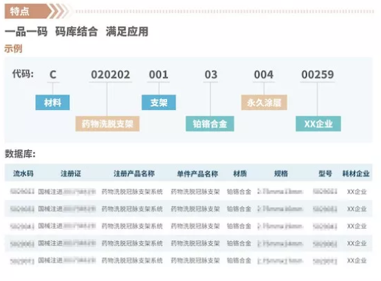 第5部分:生產(chǎn)企業(yè)碼,依據(jù)醫(yī)療器械注冊(cè)證或備案憑證為耗材生產(chǎn)企業(yè)賦予的唯一代碼,用5位阿拉伯?dāng)?shù)字表示。