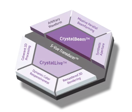 Hera i 10繼承并升級(jí)了全球首款5D超聲“三星麥迪遜WS80A”的“晶體結(jié)構(gòu)”成像理念,即將CrystalBeam?波束形成技術(shù)、CrystalLive?超聲成像引擎、S-Vue Transducer?視覺傳感器集于一身,提供更清晰的圖像。