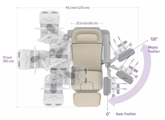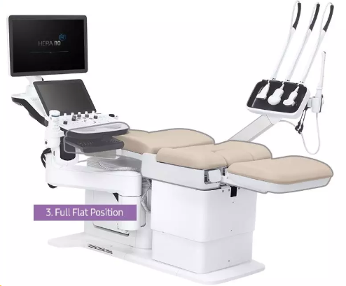 Hera i 10明顯區(qū)別于其他同類設(shè)備的亮點(diǎn)是安裝于顯示器右側(cè)的可調(diào)節(jié)座椅,最大尺寸長度為7.5英尺(230厘米)x寬6英尺(183厘米)x高度5.7英尺(175厘米)。座椅可通過機(jī)械控制,自動(dòng)調(diào)整角度來配合醫(yī)生檢查和優(yōu)化患者就診體驗(yàn)。