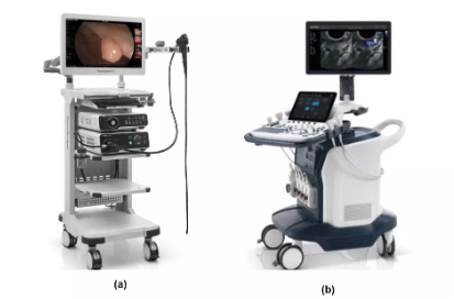 (圖3) EG-UR5可搭配開立醫(yī)療全高清電子內(nèi)鏡系統(tǒng)HD-550(a)和超聲系統(tǒng)S60(b)