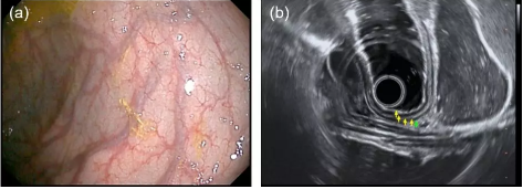 在系統(tǒng)層面,EG-UR5可搭配開立醫(yī)療全高清電子內(nèi)鏡系統(tǒng)HD-550和的超聲系統(tǒng)S60,為上消化道病變性質(zhì)診斷提供優(yōu)異的光學(xué)圖像和超聲圖像(圖3)。HD-550內(nèi)鏡系統(tǒng)搭載了國產(chǎn)首臺(tái)雙波長LED復(fù)合的內(nèi)窺鏡冷光源VLS-50T,不僅能夠提供高亮度白光觀察,還支持聚譜成像(SFI)和光電復(fù)合染色成像(VIST)兩種特殊光觀察模式。S60超聲系統(tǒng)除了支持常規(guī)超聲掃查模式,還提供彈性成像、造影成像等成像模式。