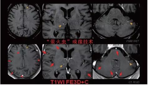 此技術主要用于神經系統(tǒng)惡性腫瘤,以及其他腫瘤腦轉移瘤篩查。傳統(tǒng)情況下做腫瘤腦轉移篩查,很容易漏掉5mm以下小病灶,臨床發(fā)現后干預治療比較晚,要實現2mm高空間分辨率和超薄層全腦掃描在保證信噪比的情況下需要很長時間大概十多分鐘,而且薄層增強序列顱內血管呈高亮信號,會干擾顱內小病灶的觀察,血管和小病灶區(qū)分困難。佳能”螢火蟲”成像技術既可以實現高空間分辨率和超薄層(最薄可實現0.2mm)全腦掃描,掃描時間短,2-3分鐘即可實現全腦3D掃描,同時避免了血管高亮信號的干擾,對顱內原發(fā)或繼發(fā)的微小腫瘤檢查有重大意義。“螢火蟲”成像技術具有磁敏感效應,對于亞急性血敏感敏感,可以區(qū)分出血和強化的腫瘤。
