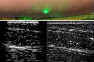 臨床應(yīng)用的無創(chuàng)超聲,要求探頭與人體皮膚直接接觸來向身體傳導(dǎo)高頻振動的超聲波。但是,有一些特定的患者卻在超聲檢查時受到限制,比如兒童、燒傷患者和敏感皮膚患者等。而近日麻省理工學(xué)院的研究人員證明,確實有可能使用激光在不接觸皮膚的前提下對患者進(jìn)行超聲波掃描。