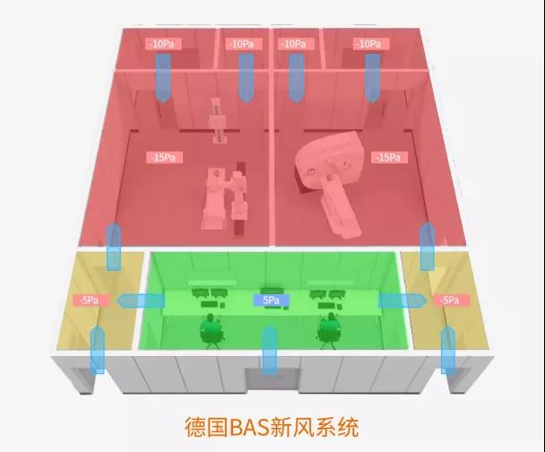 西門子醫(yī)療德國抗疫BAS新風(fēng)方案,使操作室從原來的“黃區(qū)”半污染區(qū)變?yōu)榘踩摹熬G區(qū)”清潔區(qū)