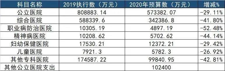 值得注意的是,在一般公共預(yù)算支出表中,國家衛(wèi)健委明確,2020年公立醫(yī)院的預(yù)算為573382.07萬元,同比2019年的執(zhí)行數(shù)減少了29.11%。
