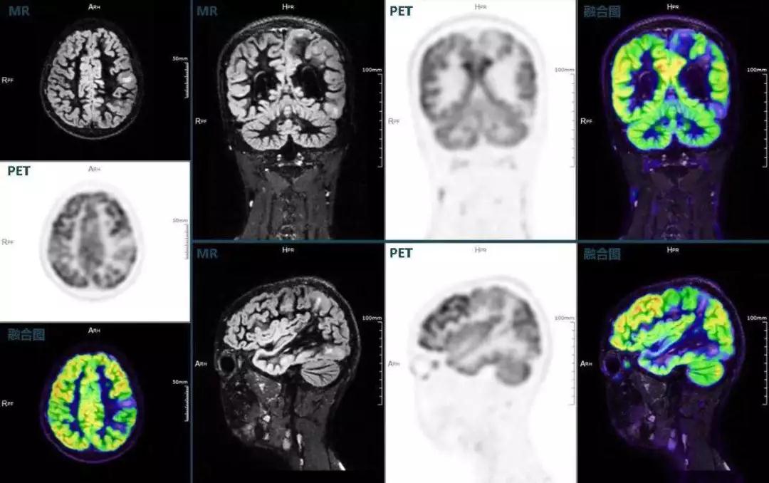 (結(jié)節(jié)性硬化,MR DIR序列清晰顯示腦皮層病理改變,PET顯示了病灶區(qū)域FDG的低濃聚。PET/MR融合顯像同時提供了結(jié)構(gòu)異常改變和功能變化的信息。)