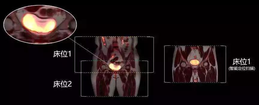 (左圖主要器官分散在兩個床位時的成像,右圖為智能定位能將床位全部置于主要器官中心時成像,避免了由于主要器官分散在兩個床位產(chǎn)生的圖像錯配,也提高了主要器官的PET/MR圖像質(zhì)量。)