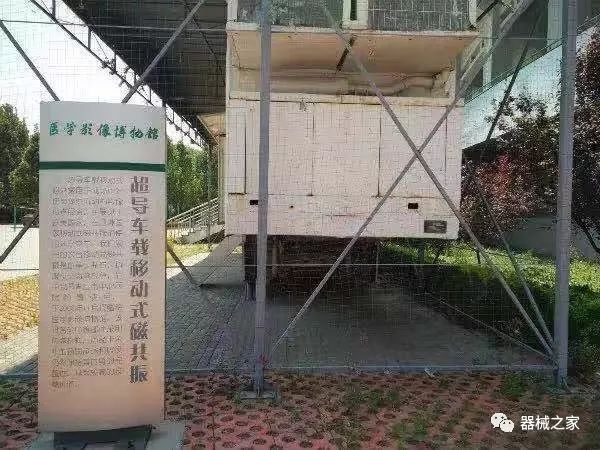博物館南側(cè)放置著一臺車載移動式磁共振。這臺磁共振是由美國生產(chǎn),當(dāng)時用于海灣戰(zhàn)爭戰(zhàn)場。戰(zhàn)爭結(jié)束后,由山東省青島市中心醫(yī)院購買,使用至2009年退役后在博物館展出。