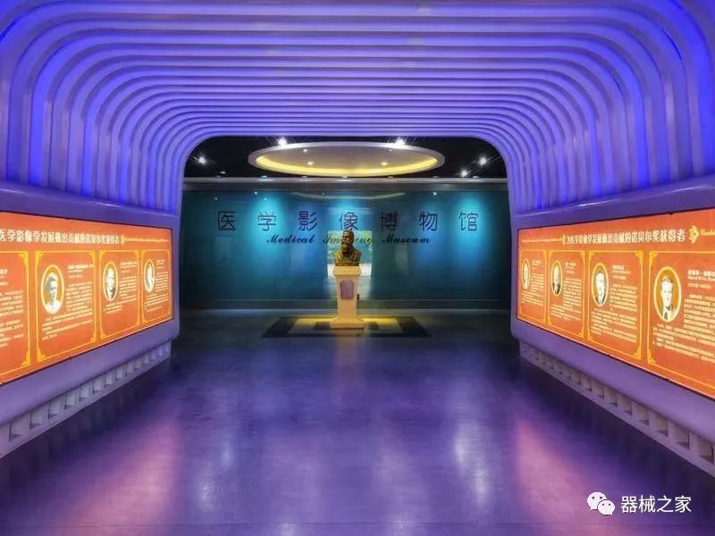 博物館序廳走廊兩側(cè)是為醫(yī)學(xué)影像做出突出貢獻(xiàn)的十位諾貝爾獎獲得者簡介,走廊中央是發(fā)現(xiàn)X射線并因此獲得首屆諾貝爾的德國科學(xué)家倫琴。
