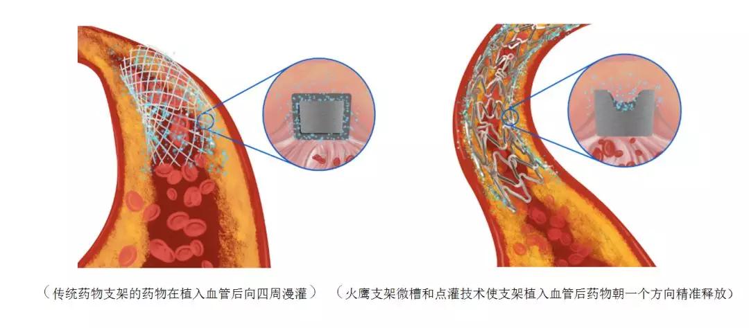 怎樣把藥物完美地“保存”在支架上?經(jīng)過反復(fù)設(shè)計(jì)和比較,火鷹研發(fā)團(tuán)隊(duì)歷時(shí)15年,選擇并達(dá)成了技術(shù)上最難實(shí)現(xiàn)的一種方案——微槽包裹藥物,即在金屬支架表面用激光刻槽,再把藥物灌入槽內(nèi)。和傳統(tǒng)技術(shù)的區(qū)別在于,刻槽可防止涂層在輸送過程中脫落,藥物不會(huì)流失,且藥物抵達(dá)血管病變區(qū)后,能通過固定的槽位精準(zhǔn)釋放,大幅提高了有效性,也避免了浪費(fèi)。