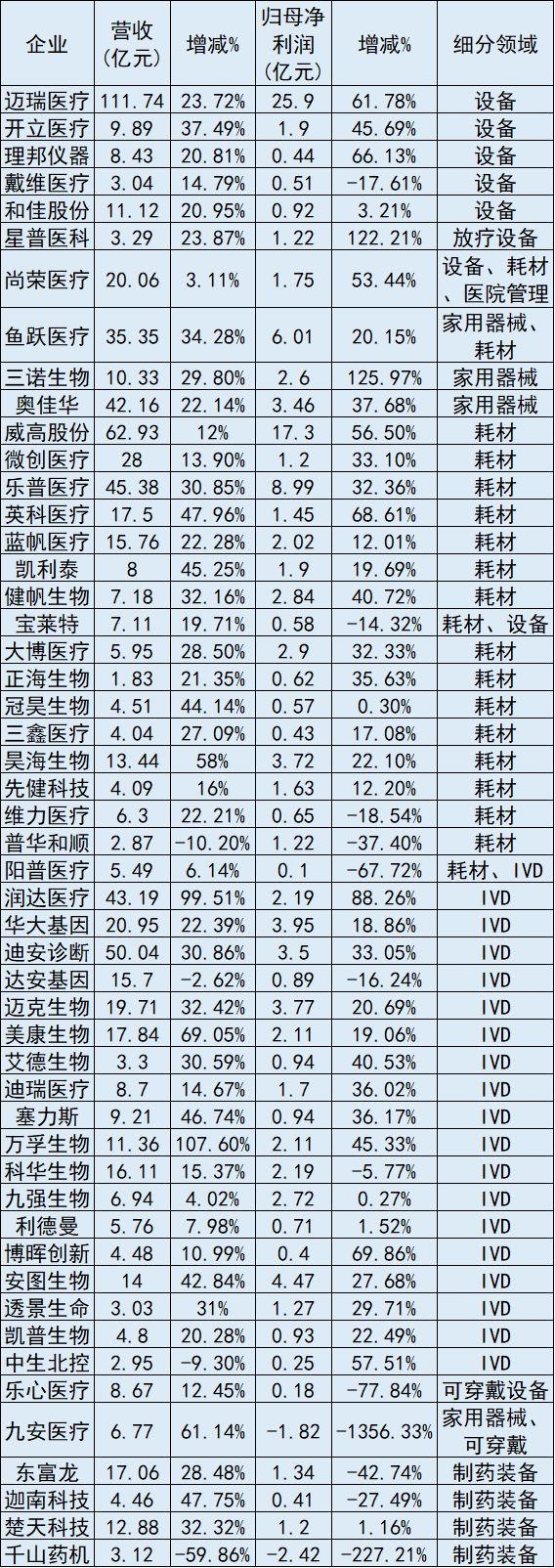 截至目前,除了新華醫(yī)療之外,尚未公布完整業(yè)績的國內(nèi)械企還有:醫(yī)療設備界的汕頭超聲和萬東醫(yī)療;耗材領域的康德萊;IVD領域的金域醫(yī)學、基蛋生物、中源協(xié)和;以及藥用玻璃包裝制造商山東藥玻。