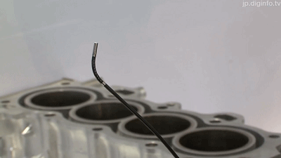 本文中所提到的IPLEX TX是奧林巴斯新一代的工業(yè)內(nèi)窺鏡,其直徑只有2.4mm,奧林巴斯宣稱它是世界上最小的工業(yè)內(nèi)窺鏡,認(rèn)為“相比新技術(shù)的精細(xì)程度而言,傳統(tǒng)的光纖捕捉畫面看上去就像黑白漫畫書一樣,成像顆粒粗糙?!?