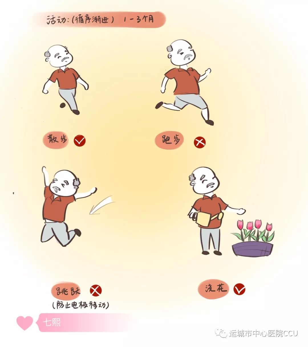 出院后1--3個月,活動應(yīng)循序漸進(jìn),防止電極移位。