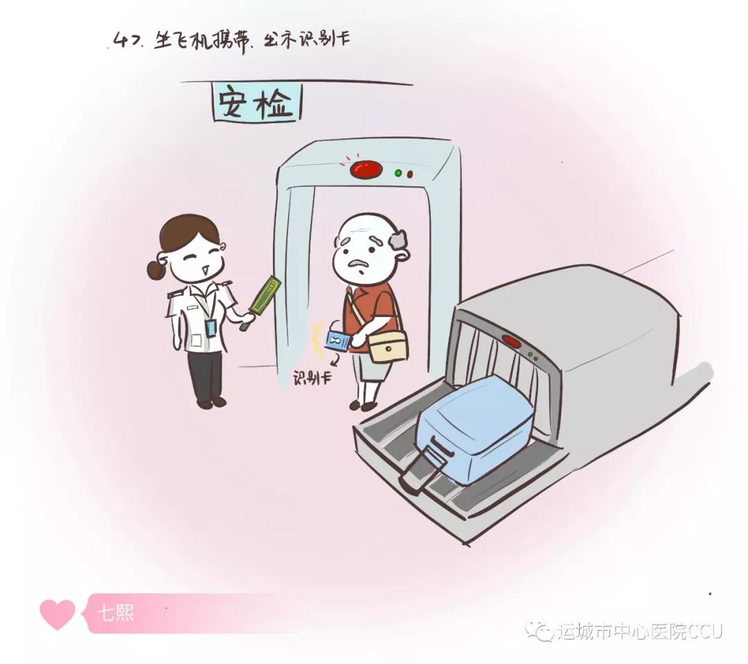 安檢:乘坐飛機(jī),安檢時,應(yīng)對工作人員出示起搏器識別卡。