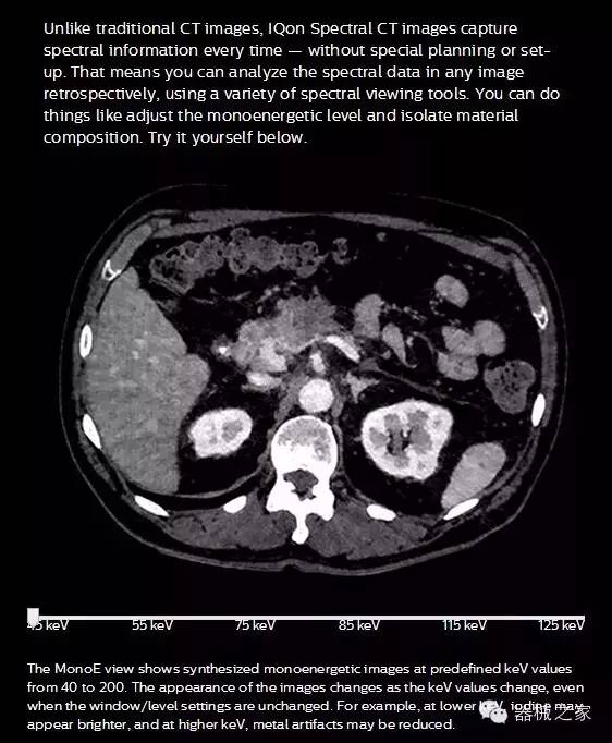 IQon光譜CT能夠按照需求提供光譜量化和工具,并能通過簡單工作流程、在低劑量下對結(jié)構(gòu)進行定性分析