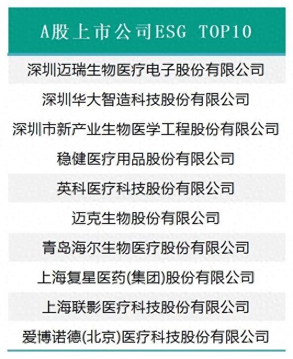 中國(guó)醫(yī)療器械A(chǔ)股上市公司ESG TOP10